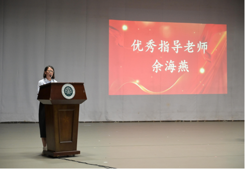 余海燕老师代表优秀指导老师发表感言。她表扬同学们在教学工作中的严谨负责、专注投入,期望其坚守初心。郑涵悦老师以“团建、双导、成长”为核心,分享指导心得,总结团建聚心、双导协同机制,展现对学子成长的欣慰,传递师生共促专业发展的思考。