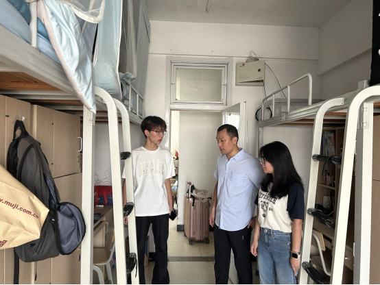 走访过程中,老师们仔细检查了学生离校宿舍清理情况,排查违规电器、门锁上锁等安全隐患,就宿舍卫生情况、套间大厅堆放杂物情况督促学生整改,提醒同学们保持良好宿舍卫生,营造温馨和谐的宿舍环境。