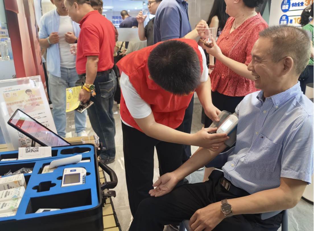活动现场,“一心安宁”的展位聚集了许多参展者驻足,志愿者为到场人员演示“慧护老”智能监测设备及“AI叙事护理系统”,同时为长者们免费监测血压、心率、血氧等。数据通过智能系统实时上传,成为展示“科技+人文”照护理念的窗口。