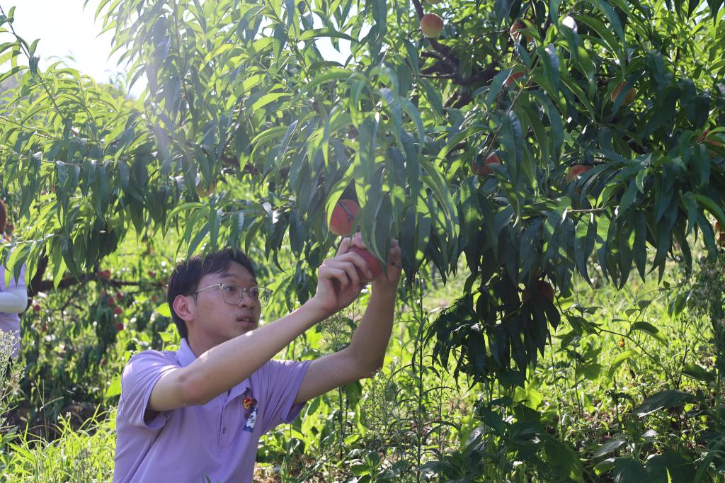 队员们走进生机勃勃的田园,开启了丰富多彩的农事体验活动。在水蜜桃种植园里,一个个饱满多汁的水蜜桃挂满枝头,散发着诱人的香气。队员们穿梭在桃林间,按照果农传授的方法,挑选成熟的桃子,摘下放入篮中。虽然烈日炎炎,汗水湿透了衣衫,但看着一筐筐丰硕的果实,大家的脸上洋溢着喜悦的笑容。