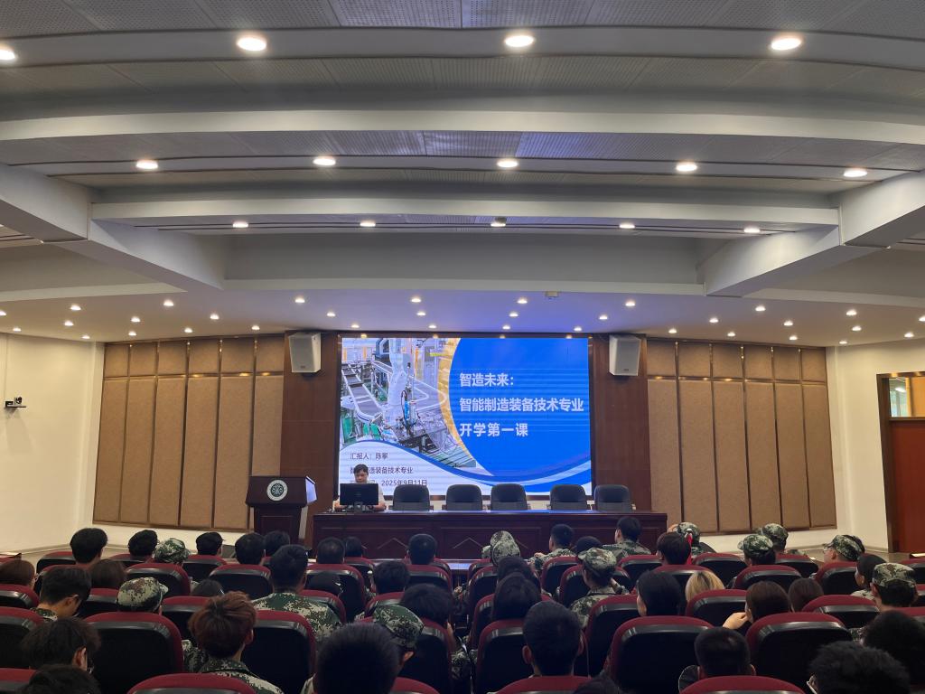 近日,智能制造学院在报告厅召开2025级新生“开学第一课”。学院领导、各专业负责人及全体 2025 级新生齐聚一堂,围绕学籍管理规定解读与四大核心专业介绍展开,为新生们送上了一份“入学指南”。