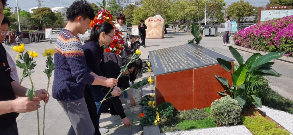 活动第一项流程是进行悼念仪式,集体缅怀革命先烈。在林祥谦烈士陵园广场,教师们、同学们面对林祥谦烈士雕像低头默哀,党员教师代表林特、陈菲为烈士敬献花蓝,随后,师生们排队轮流为烈士献上鲜花,并绕行纪念塔一圈,向老一辈革命先烈致以最崇高的敬意,整个过程庄严肃穆。