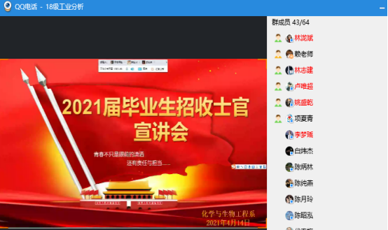为做好2021届毕业生就业工作,拓宽应届毕业生就业渠道,帮助学生顺利就业,我系于2021年4月14日在线上组织开展“2021届毕业生招收士官宣讲会”。