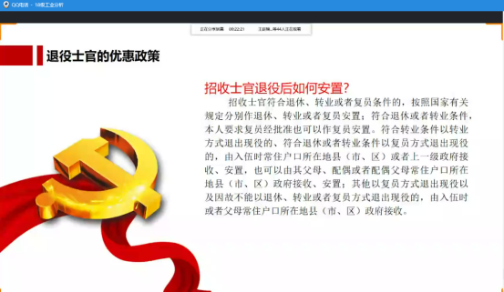 直接从非军事部门招收士官,是直接招收普通高等学校毕业生入伍作为志愿兵役制士兵到部队服现役。宣讲会上,辅导员向2021届毕业生线上解答报名应征招收士官的步骤、条件和注意事项。接着,解答了招收士官入伍的手续、分配岗位和岗位晋升,让学生在服现役期间有明确的职业目标和方向,提升自己的能力。同时,针对学生比较关心的退役后安置问题进行答疑,让学生清楚地了解招收士官入伍、退役后享受的补偿代偿政策,帮助大学生解决退伍后的就业问题。
