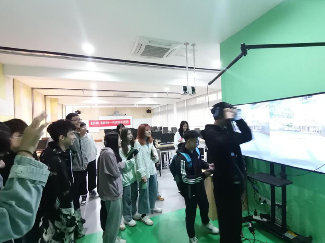 11月24日,在计算机系VR实训室,同学们戴上VR头盔,轻触按钮,最远长征出发地宁化凤凰山的红军街、乡苏维埃政府旧址、五通庙、红军医院、红军看病所、红军第四人民医院等这些红色遗迹映入眼帘,点击“院子介绍”,就踏上这片热土,重走长征路,重温党的初心和使命。
