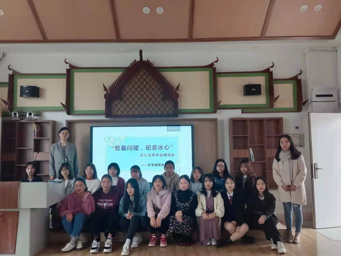 为纪念校友冰心,在学校营造浓郁的冰心文化氛围。12月10日,外语系在教学楼5002举办了“繁星闪耀,纪念冰心”朗诵比赛。外文诵读会指导老师许璐颖、外语系辅导员欧阳花出席了本次比赛并担任评委。