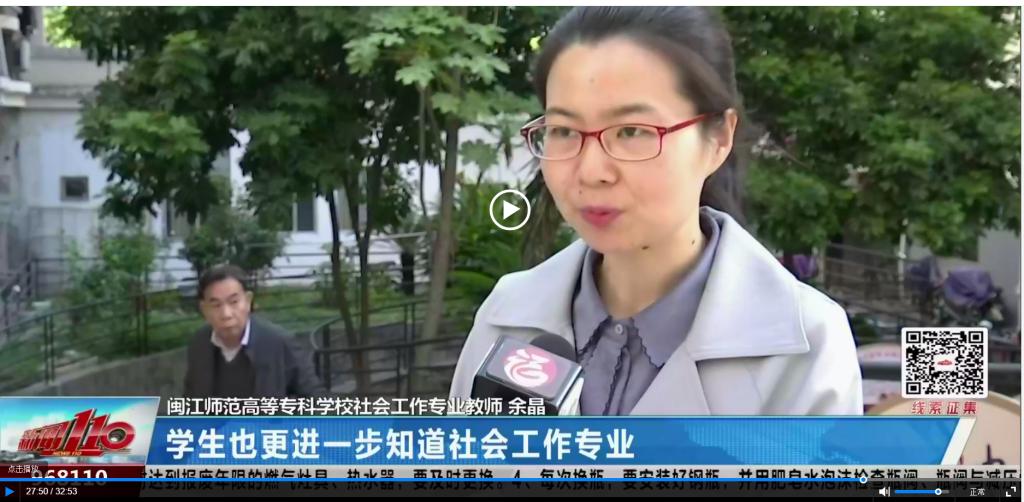 本次活动受到福州电视台“福州新闻110”的报道,新闻在2020年11月12日播出。电视台记录了入户的真实画面,社会工作专业余晶老师接受采访。余晶老师在市级媒体上介绍社会工作人才培养情况,展现社会工作培育的风采,扩大社会工作专业的影响力。