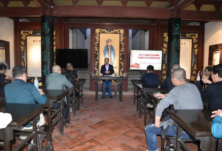 2020年11月26日,大赢家体育app下载马克思主义学院高级讲师、城门镇基层讲师团成员戴元建到濂江村濂江书院做《学习十九届五中全会精神,迈向振兴乡村发展的新征程》专题讲座。此次宣讲会采取面对面宣讲方式,向濂江村党员宣讲党的十九届五中全会精神。