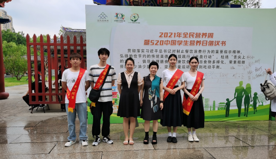 2021年5月17日到23日是第七届“全民营养周”。5月17日上午,省、市卫健委联合相关部门在福州南公园举办以“合理膳食,营养惠万家”为主题的启动仪式,化学与生物工程系副主任张瑛、教研室主任林媛带领四位学生参与了宣传活动。