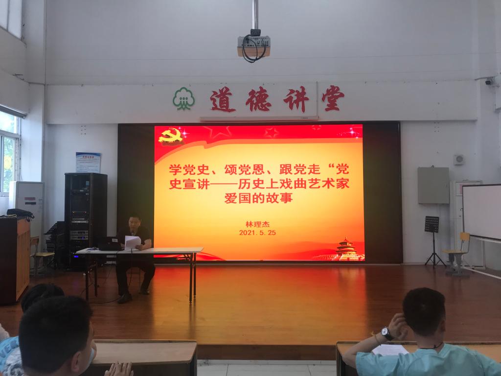 5月25日中午,甘蔗校区的党史宣讲会如火如荼地进行着,甘蔗校区全体中职学生参加学习。系党总支宣传委员陈志勇以《红色经典音乐家的创作特点》为主题,带领学生学习了红色经典音乐家的创作特点,让学生了解红色经典音乐作品中的党史故事。系党总支组织委员林理杰以《历史上戏曲艺术家的爱国故事》为主题,激励师生不忘初心、传承非遗,在奋斗中书写鲲鹏击浪的青春华章。系党总支统战委员、副主任陈洪翔以《非遗闽剧唱响红色经典》为主题,介绍了红色题材的闽剧作品,带领学生追忆革命烈士的伟大事迹,引导学生弘扬革命精神,传承中华优秀传统文化,创作更多更好的文艺精品。系党总支副书记林萍以《砥砺初心使命 汲取奋进力量》为主题,为师生讲述了大赢家体育app下载杰出校友翁良毓的革命故事及我系创作闽剧现代剧《青春祭》的重要意义,强调广大师生要自觉接受红色传统教育,赓续红色血脉,弘扬革命精神,担负时代使命。