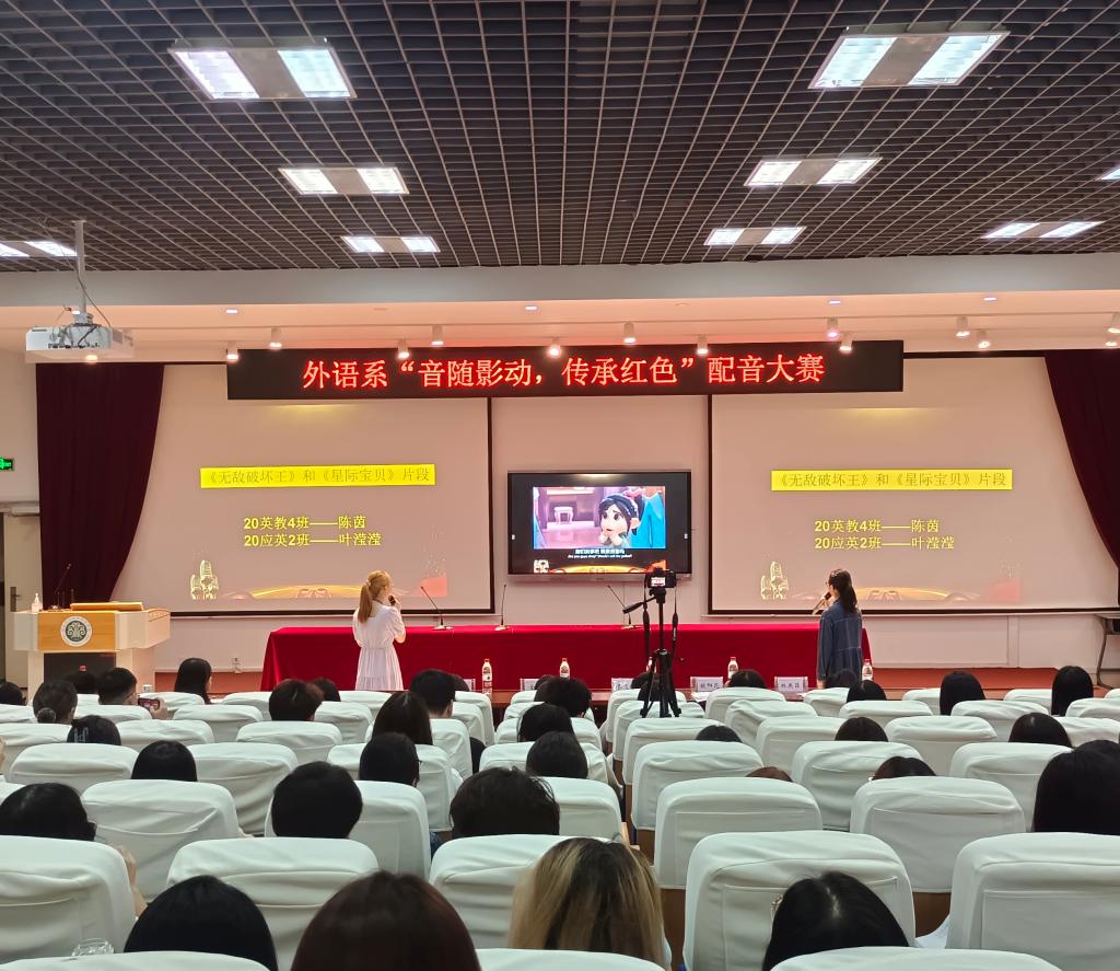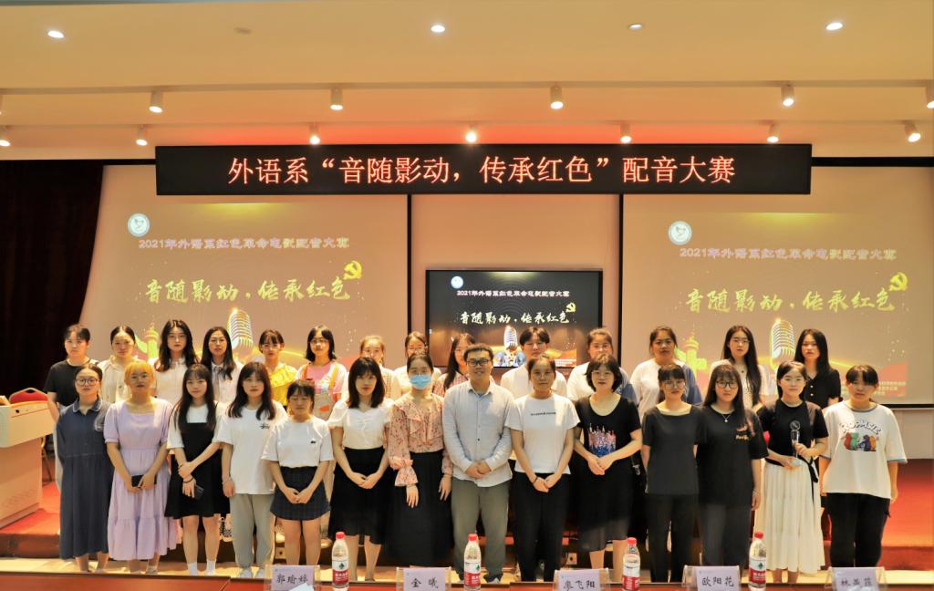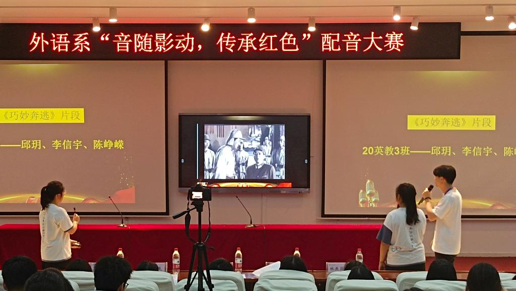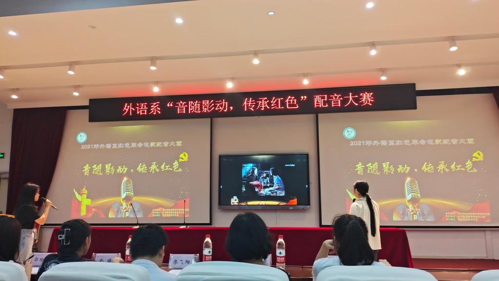 为迎接中国共产党成立100周年,进一步弘扬红色文化,传承革命精神,培养学生的爱国主义情怀,5月31日,外语系在教学楼2018教室举办“音随影动,传承红色”配音大赛。