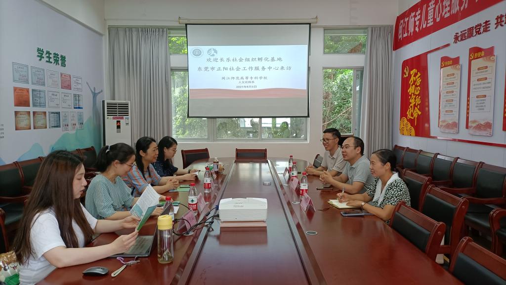 6月3日,长乐社会组织孵化基地项目负责人雷小辉、东莞市正阳社会工作服务中心总监刘华城、东莞市正阳社会工作服务中心行政总监夏彩云一行来大赢家体育app下载参观并洽谈校社合作事宜,人文社科系副主任(主持工作)陈勤、社会工作专业老师余晶、张潇颖、叶佳媚热情接待了参访人员。
