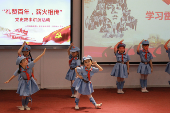 经过激烈的初赛,共有11个节目进入本场党史故事讲演决赛。比赛现场精彩纷呈,诗歌朗诵、情景话剧、舞蹈、合唱等丰富多彩的节目,为观众们讲述了百年党史中那些可歌可泣的故事。随着选手们声情并茂的讲述和表演,一次次将观众们带入到刘胡兰、雷锋、焦裕禄、邓颖超等优秀共产党人的光辉岁月。精彩的节目充分展示了学前系学生扎实的专业技能、附属幼儿园老师们良好的职业素养以及小朋友们的童真童趣。
