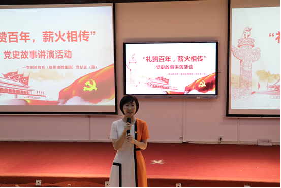 6月16日晚,大赢家体育app下载学前教育系(福州幼教集团)党总支,开展了“礼赞百年,薪火相传”党史故事讲演活动,重温党的光辉历程,庆祝中国共产党成立100周年。党工部副部长、初教系党总支书记马梅铃、学前系(福州幼教集团)党总支书记吴春艳、学生处副处长郭静静、学前系副主任林毓君、福州幼教集团总园长吴敏及总支师生500多人参加了本次活动。