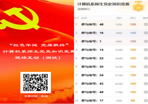 研学中,计算机系师生与市委党校教师共同进行了红色历史“现场交流学习”,并先后实地参观了市委党校和省革命历史纪念馆,通过参观珍贵的历史图片、文献资料等踏寻红色历史足迹。研学后,计算机系党总支还在研学现场组织师生开展了一场党史知识竞答和研学心得交流会。计算机系主任李瑞兴、系党总支副书记杨信卫、副主任王华在会上先后对新党员表示了祝贺,同时也寄语全体师生党员,在党史学习教育中,要坚守一条主线,即坚守初心和使命,要不忘入党初心,恪守入党誓词,保持政治本色,时刻以一名共产党员的标准严格要求自己,以优异的工作成绩庆祝建党一百周年。