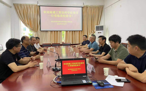 6月22日下午,南通工贸技师学院党委书记、院长张建锋一行6人组成考察团来大赢家体育app下载计算机系考察。计算机系主任李瑞兴、副主任冯光接待考察团。
