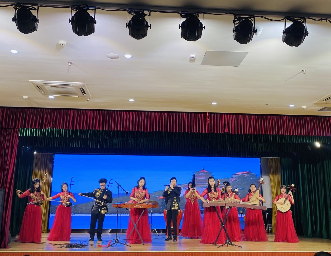 演出在大合唱《前进吧 中国共产党》和《唱支山歌给党听》中拉开序幕。整场汇演以“奋斗百年路,启航新征程”为主题,以“庆祝中国共产党成立100周年”为主线,展示出中国共产党百年光辉历程和辉煌成就。我系谢军老师演唱的《复兴之歌》和繁星民乐团演奏的《红歌联奏》受到领导和观众的一致好评。嘹亮的歌声,动听的乐声充分展现了艺术系师生的爱党、爱国情怀和昂扬向上的精神风貌。现场掌声雷动、激情澎湃。