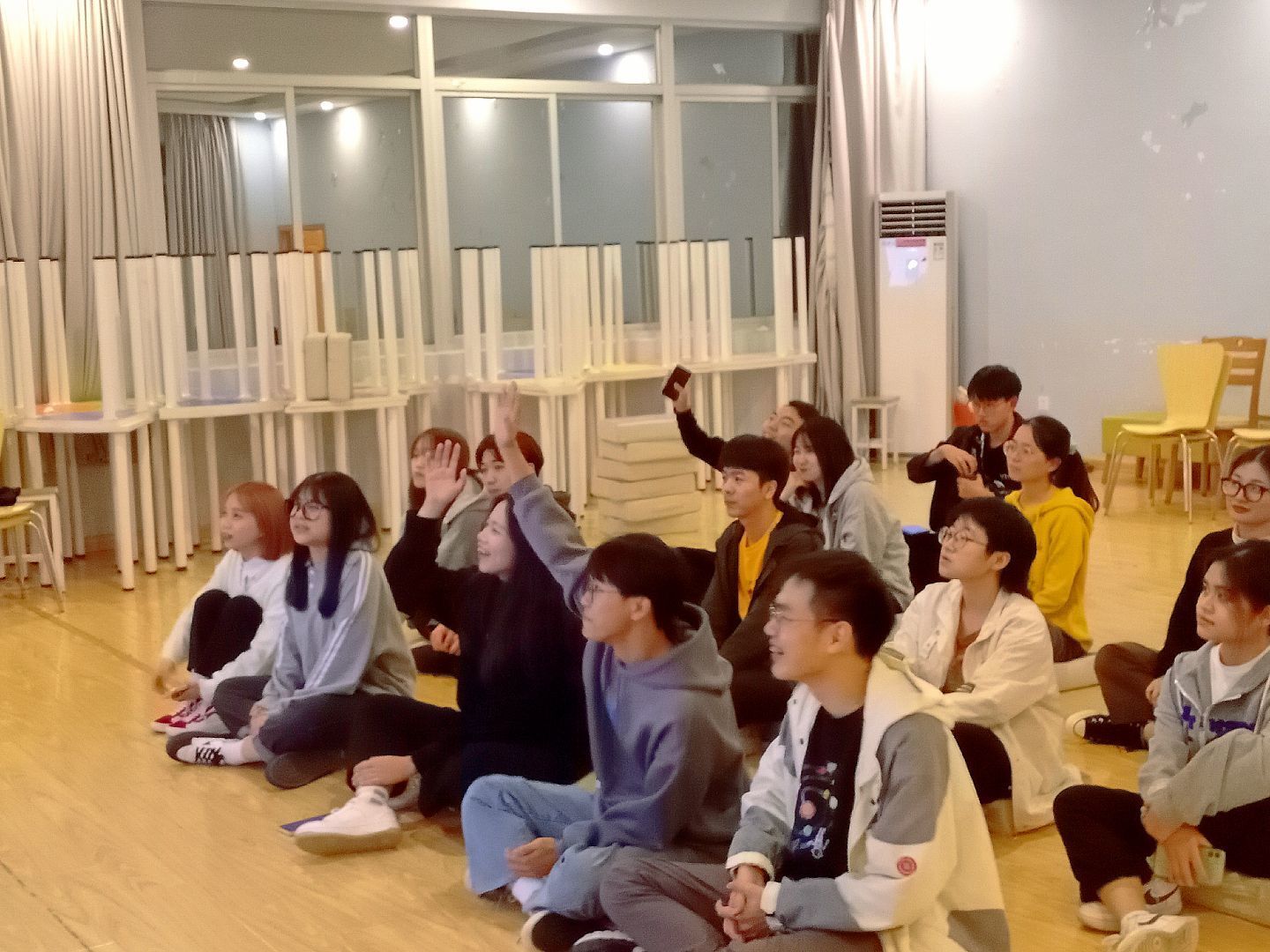 图1 主持人现场与同学们互动讨论话题