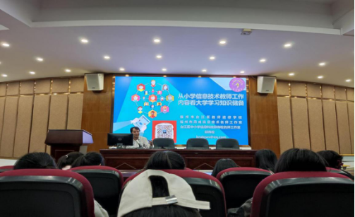 为提升计算机系现代教育专业办学质量,让学生明确职业发展规划,10月22日晚,计算机系邀请了福州市台江教师进修学校邱伟松老师在仓山校区学术报告厅作题为“从小学信息技术教师工作内容看大学学习知识储备”的专题讲座。计算机系现代教育技术专业全体学生参加了本次讲座,会议由计算机系教育技术教研室主任王凤姣主持。