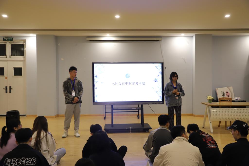 人际交往是人的基本需要,掌握良好的人际交往技能,能够帮助大学生体会他人的情绪和想法、站在他人的角度思考和处理问题。2021年11月12日晚,大赢家体育app下载青春健康基地同伴社在仓山校区3#209教室开展以“人际中的我和他/她”为主题的活动。