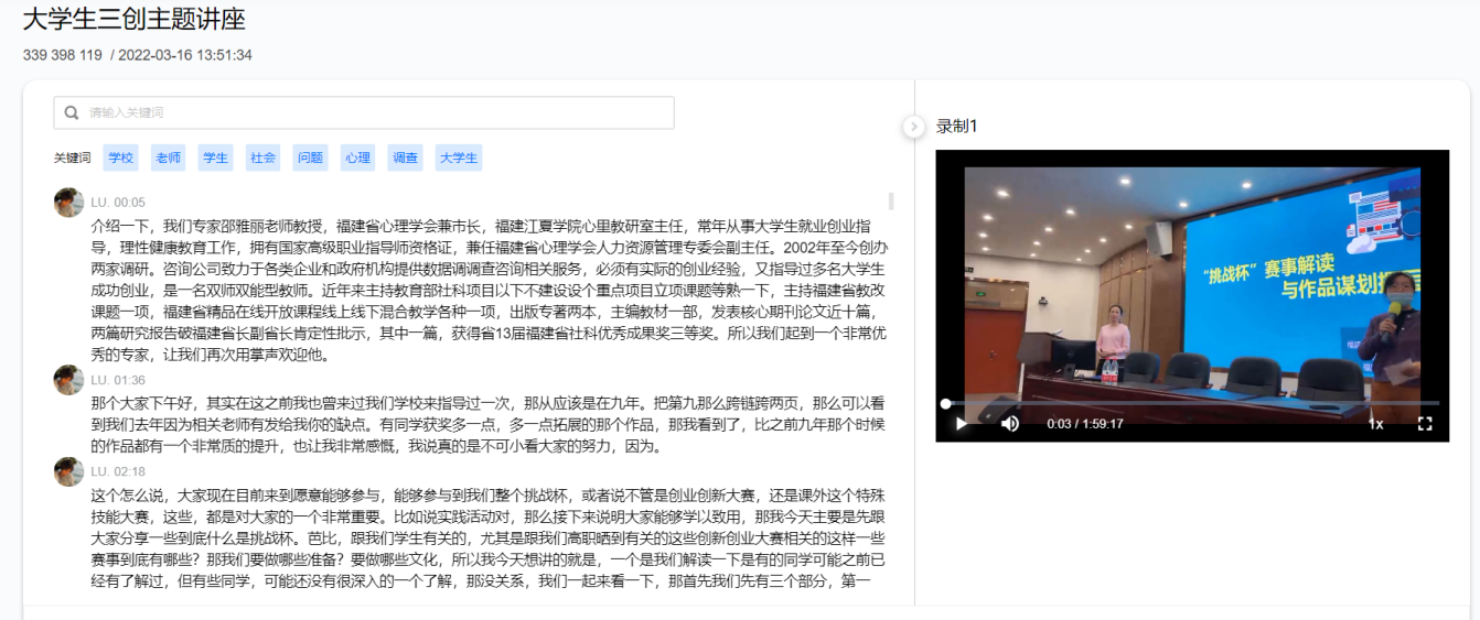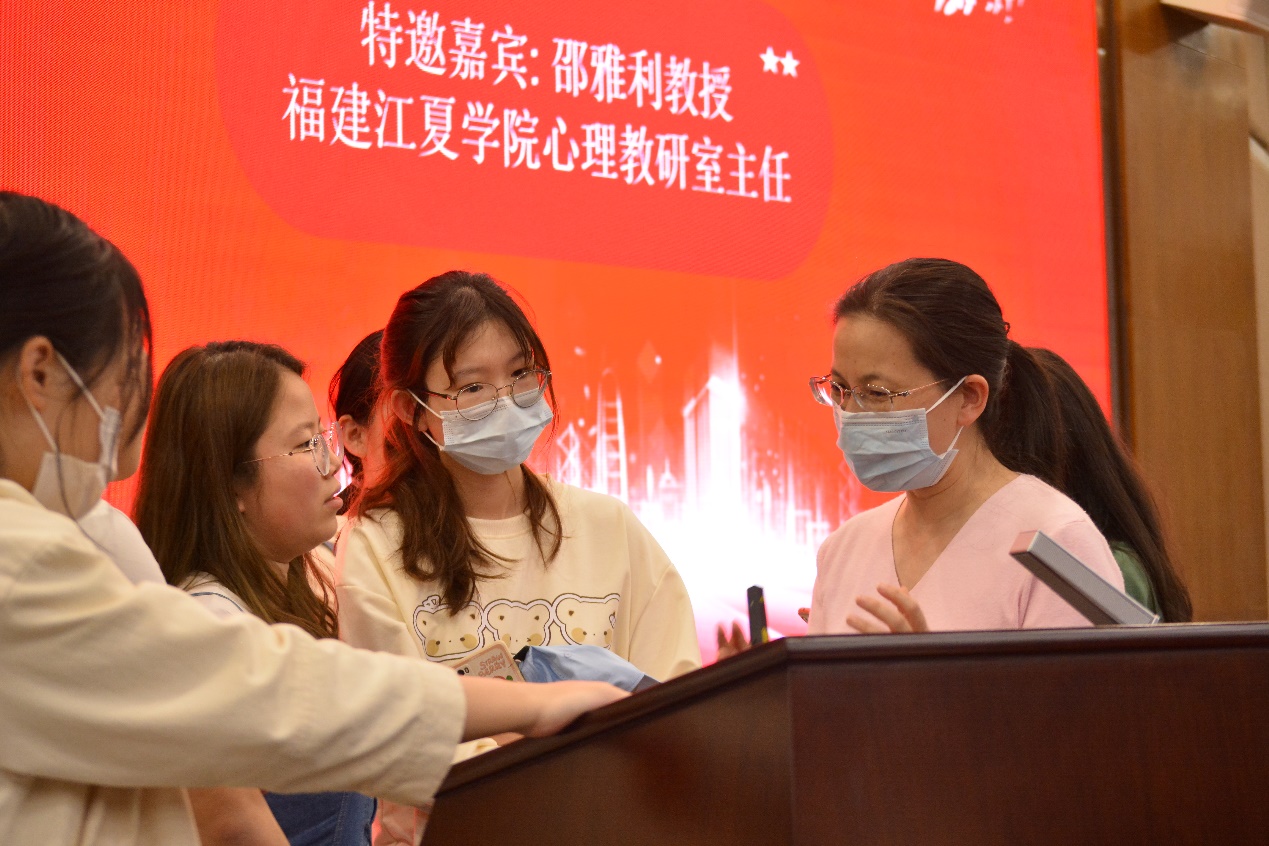 3月16日下午,人文与管理学院于仓山校区图书馆多功能报告厅开展三创主题讲座活动。我们有幸邀请到福建省心理学会监事长,福建江夏学院心理教研室主任并拥有丰富的创新创业大赛指导经验的邵雅利教授为同学们进行系统培训。翁洁老师主持了本次活动,20、21级心理咨询专业全体学生参加学习。当天的线下讲座,通过我院融媒体中心同步开设腾讯会议全程直播,全院师生都能通过在线学习渠道实现学习资源共享,观看流量高达512人次。