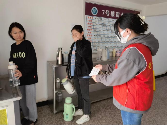 “一人不少、一生不漏、一项不缺、一天不断”是教师党员们对自己工作的要求。他们组织学生开展多轮核酸检测;开展严格的晨午检体温监测;在年级群、班群、班干部群等实时分享疫情日报,让学生及时了解疫情动态;宣传疫情防控知识,加强学生个人防护意识。他们精准掌握每一位学生的信息,始终做到心中有数。