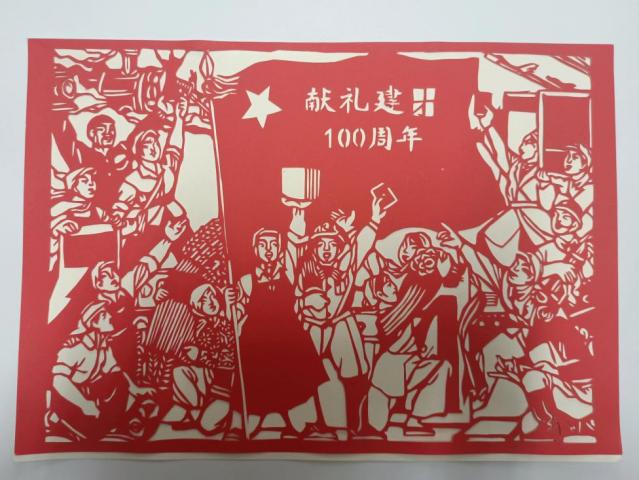 同学们踊跃报名,充分发挥专业技能,灵活运用剪刀、刻刀精心创作,灵巧的手指在红纸上演绎一场绝美的“纸上舞蹈”。他们有的以中国共产党百年历史中的重要人物、事件、地点为主线,穿插祖国代表性建筑、名胜风景;有的通过搜集展现先进人物的照片、书报刊物、绘画作品等资料,进一步挖掘先进典型,寻找灵感融入作品。经过认真的创作,同学们共创作出了二十余幅主题鲜明、精彩生动,饱含对党和国家热爱之情,表达青年学生不忘初心、牢记使命,锐意进取、勇毅前行的剪纸作品。