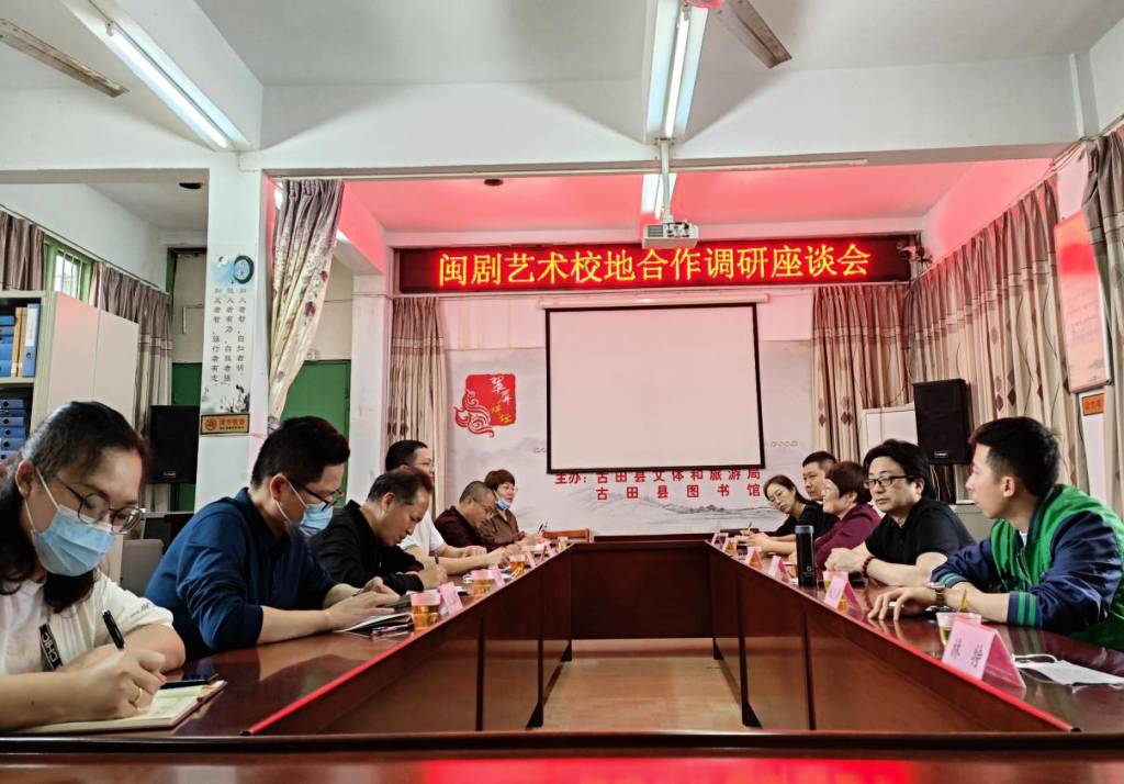 本次调研得到古田县领导的大力支持。调研组一行实地走访了古田闽剧艺术中心,了解了古田闽剧艺术院团发展和闽剧艺术人才需求情况,并在古田县文旅局会议室与当地文旅、教育、人社等部门及闽剧院团负责人座谈交流,共商校地合作推进闽剧艺术繁荣发展的实现途径。