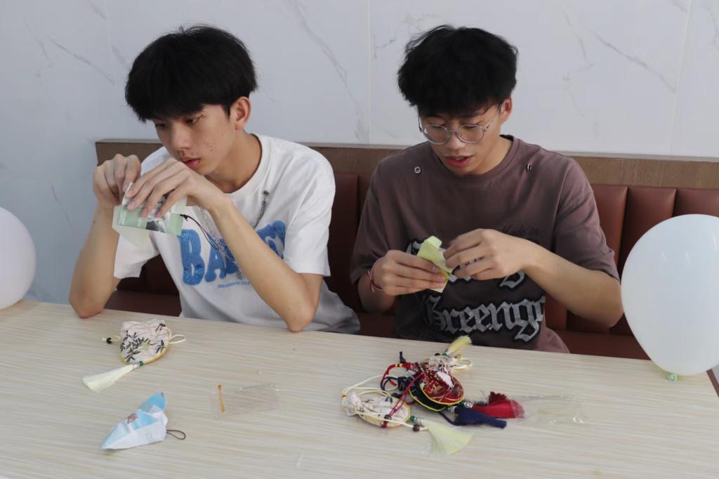万粽飘香,食味渐浓。活动现场,粽子是端午节的“主角”,自然少不了包粽子活动。在指导老师的带领下,同学们清洗粽叶、捋粽叶、填糯米,压实、封口、捆扎,粽叶在她们手上翻转飞舞,一只只棱角分明的三角粽、四角粽很快成型,参与活动的小朋友也认真模仿大朋友的样子,一起有模有样地学着包粽子。大家一边包一边分享包粽子技巧,现场其乐融融。