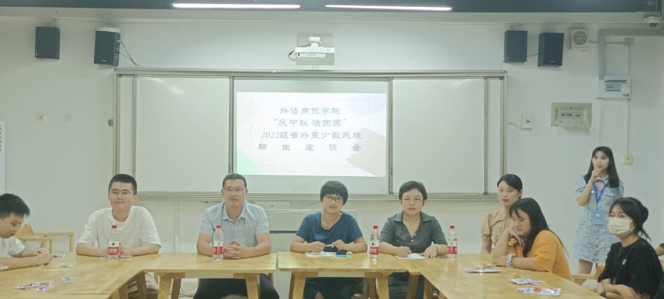 在省外新生座谈会上,院领导以及学生处副处长陈胜与来自广东、广西、云南、四川、山西等省份的54位省外新生进行了亲切的交谈,这些新生中有部分为少数民族。会上,老师们详细地询问了同学们入学以来的学习、生活情况。院长何少娴强调,外语商贸学院一直以来秉承“自由、包容、友爱”的学院精神,积极营造共居、共学、共事、共乐的育人环境;同时,她勉励同学们珍惜大学时光,树立远大目标、做好职业规划,以开阔的眼界、创新的思路去探索世界,以立足当下,放眼未来,为社会及个人的发展刻苦学习、奋发有为。