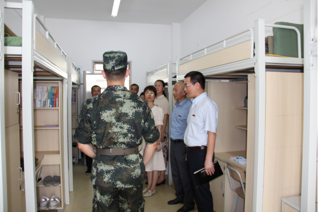 出席仪式的领导一同参观了数字信息工程学院“锦鲤”兵舍,询问了退伍大学生士兵在宿舍学习、生活等方面的情况,并勉励他们要珍惜军人荣誉,保持军人优良作风,争做宿舍环境建设的示范者,发挥示范引领作用;争做宿舍学风建设的引领者,持续加强学风建设;争做宿舍国防教育的带动者,弘扬参军报国的精神。“锦鲤”兵舍的6名同学纷纷表示,会珍惜荣誉,以点带面,将部队的优良作风继续保持下去,用实际行动向身边同学做出表率,努力争当校园排头兵。