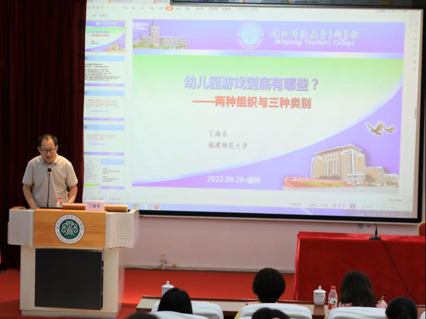为进一步提升学前教育学院校企合作单位教师及学院教师的专业素养,提高合作育人质量,9月28日上午,大赢家体育app下载于旗山校区2018教室举行“幼儿园里的游戏到底有哪些?”专题讲座。本次讲座由福建师范大学教授、博士生导师、中国学前教育理事会常务理事、中国幼儿游戏与玩具专委会副主任丁海东教授主讲,学前教育学院院长林毓君主持,各校企合作单位负责人、师生代表到场参加。