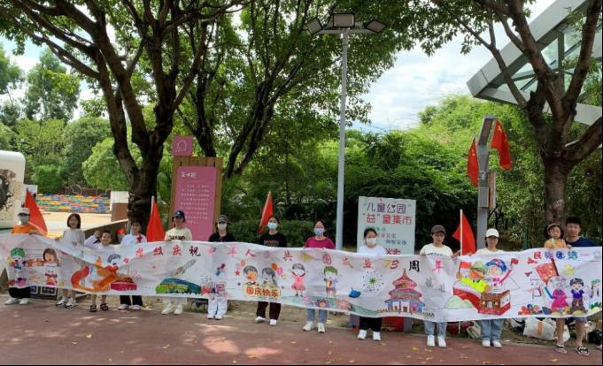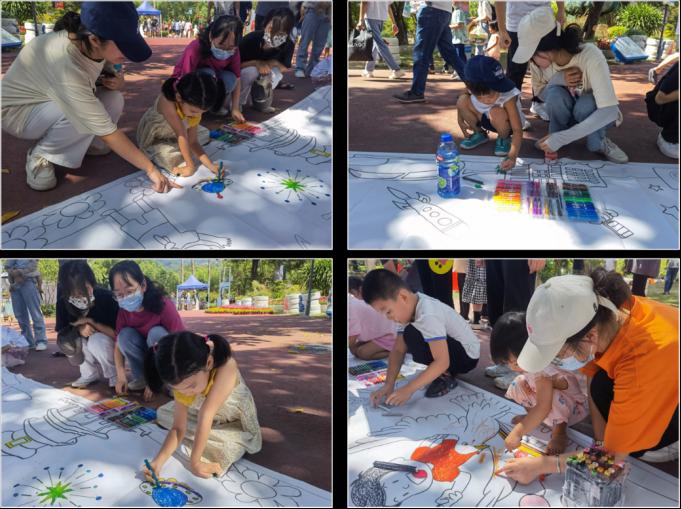 10月3日上午,学前教育学院华洁琼老师带领21级早教专业9名学生前往福州市儿童公园,参加由福州市早期教育指导中心举办的“红色基因,强国有我——30米长卷亲子绘画”早教入社区活动,与30余组家庭共同庆祝祖国73周年华诞。