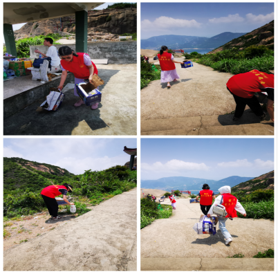 活动中,老师们以一往无前的奋斗姿态勇攀旗冠顶1899级台阶,迎难而上显韧劲,互帮互助共登顶,在旗冠顶俯瞰整个渔村和宛如一座“海上牧场”的成片渔排,身临其境感受乡村振兴的丰硕成果,进一步坚定为师生服务、为国家发展奉献自己力量的决心。在登顶的过程中,党员同志发挥先进性,开展“拾捡垃圾、守护环境”志愿活动,沿途清理道路上的矿泉水瓶、塑料袋等垃圾,还青山干净整洁。