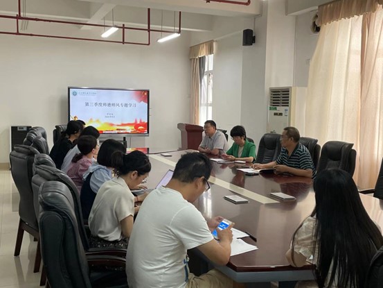 9月27日下午,学生处党支部全体教职工在综合楼七楼会议室开展理论学习会以及中秋、国庆节前廉洁自律提醒谈话会,会议由郭静静处长主持。本次围绕网络安全宣传周专题、习近平总书记回信复信精神、第三季度师德师风专题以及“知规知纪知法 筑牢廉洁防线”主题展开学习。