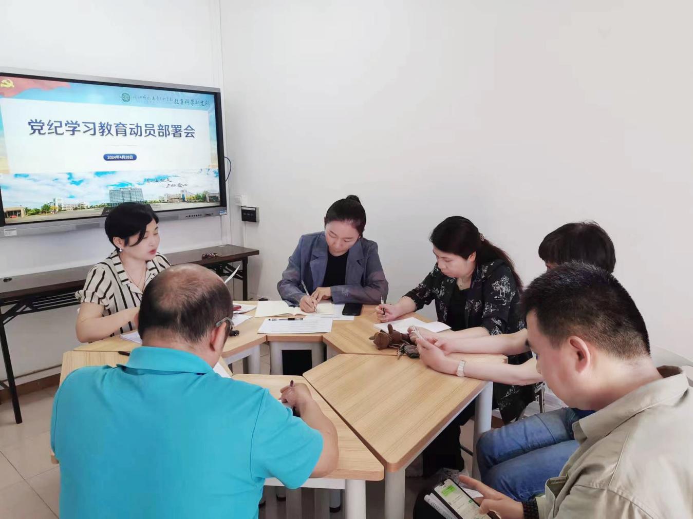 4月28日下午,教科所党支部在光禄坊校区3号楼微格研训室召开党纪学习教育动员部署会暨学习交流研讨会。会议由支部书记蔡勤主持,全体党员参加。