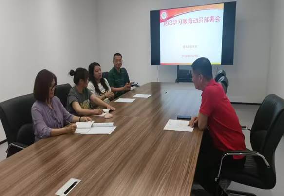 4月29日上午,图书馆党支部书记董志强召集全体党员召开党纪学习教育动员部署暨学习交流专题研讨会。
