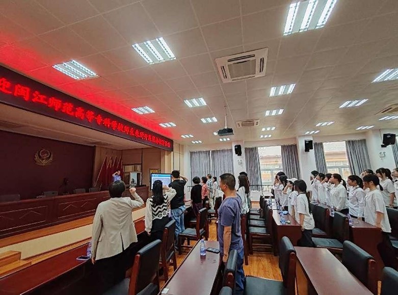 参观结束后,刘建珍警官为大家上了一堂精彩的禁毒教育课。她以通俗易懂的语言向师生们介绍了毒品的种类以及对人体的危害,并利用生活中鲜活的案例、短视频以及相关的法律知识进行相关毒品知识科普,使大家认识到生活中可能存在的与毒品相关的危险情境,认识到毒品对个人、对家庭、对社会造成的严重危害,增强师生防毒意识,提高抵御毒品的能力。最后,大家在刘警官的带领下,一同进行了庄严的禁毒宣誓,用铿锵有力的誓言表达抵制毒品的信心和决心。
