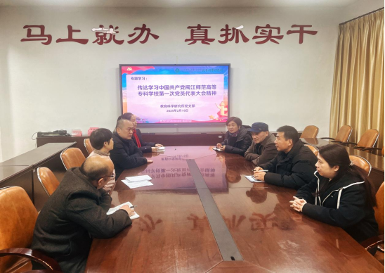 2月19日下午,教科所党支部积极响应校党委号召,组织召开专题会议传达学习学校第一次党员代表大会精神,迅速掀起学习热潮。会议由党支部书记蔡勤主持,教科所全体党员及教职工参会。