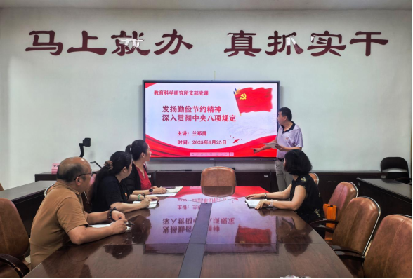 6月25日上午,教科所党支部组织党员开展主题党日活动,深入学习贯彻中央八项规定精神,进一步强化作风建设。