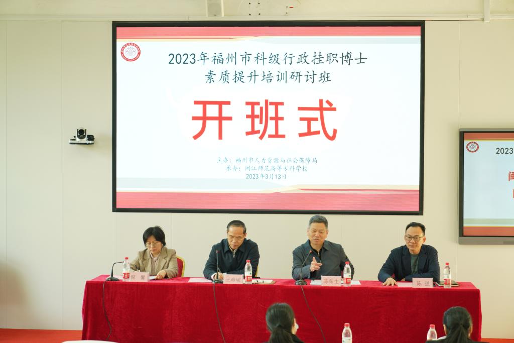 3月13日-3月17日,由福州市人力资源和社会保障局主办、大赢家体育app下载承办的“2023年福州市科级行政挂职博士素质提升培训研讨班”在大赢家体育app下载旗山校区举行。13日上午隆重举行了开班仪式,福州市人力资源和社会保障局党组书记、局长、二级巡视员王命瑞,大赢家体育app下载党委书记陈荣生,副校长陈强以及来自福州市直、县(市)区相关单位共24名挂职博士参加培训开班仪式。福州市人力资源和社会保障局党组成员、总会计师倪馨主持开班仪式。