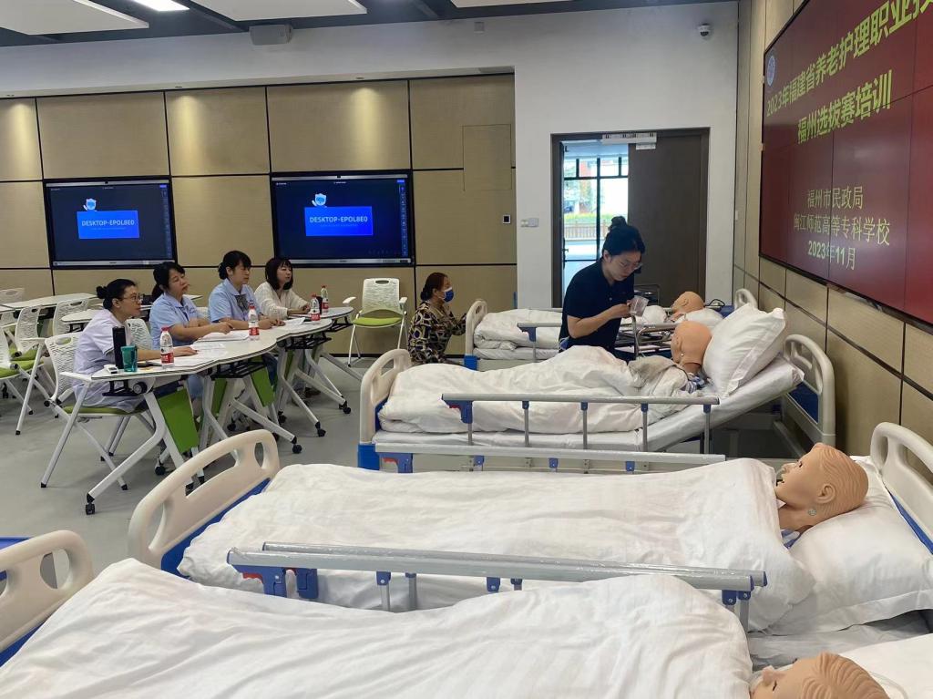 福州市民政局和闽江师专联合举办了为期4天的赛前培训,11月6-8日,分别邀请了闽江师专医护学院的3位具有养老服务专业技能培训资格的优秀教师进行授课。培训中采用理论知识与实操指导相结合的教学方式,主要围绕老年人生活照顾、基础照护、肢体训练等方面,帮助学员们巩固老年人生活照料及护理的各项操作技能。
