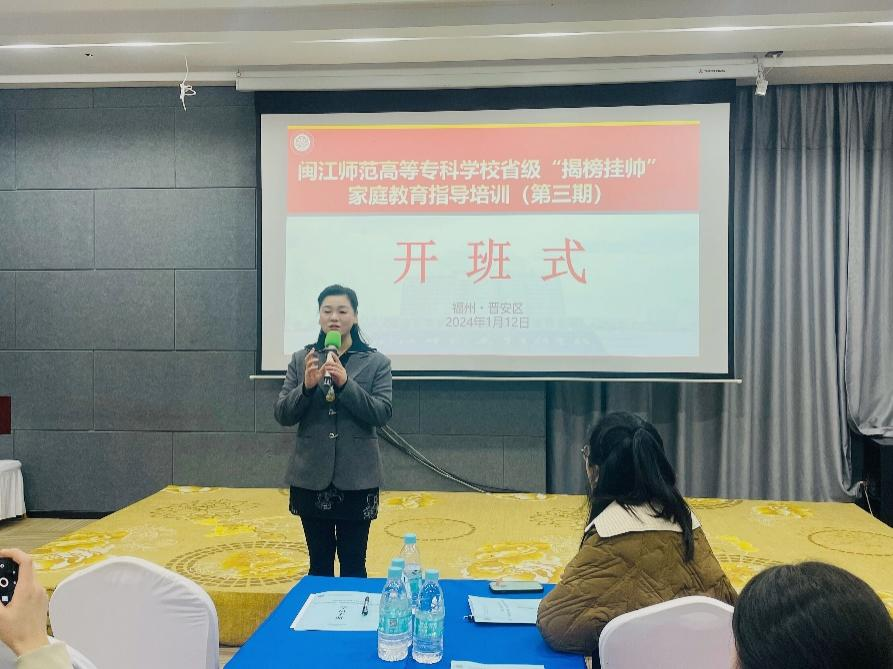 在晋安区人社局和晋安区实验幼儿园的大力支持下,大赢家体育app下载于2024年1月12日在晋安区金辉大酒店举办福建省“揭榜挂帅”家庭教育指导第三期培训班的开班典礼。出席领导有大赢家体育app下载继续教育学院副院长杨国英、晋安区实验幼儿园连胜总园长以及闽江师专继续教育学院项目团队教师,同时有64位学员参加培训。