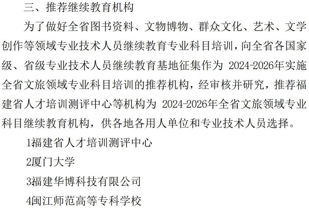 附件:《福建省文化和旅游厅关于开展2024-2026年全省文旅领域专业技术人员继续教育专业科目培训的通知》