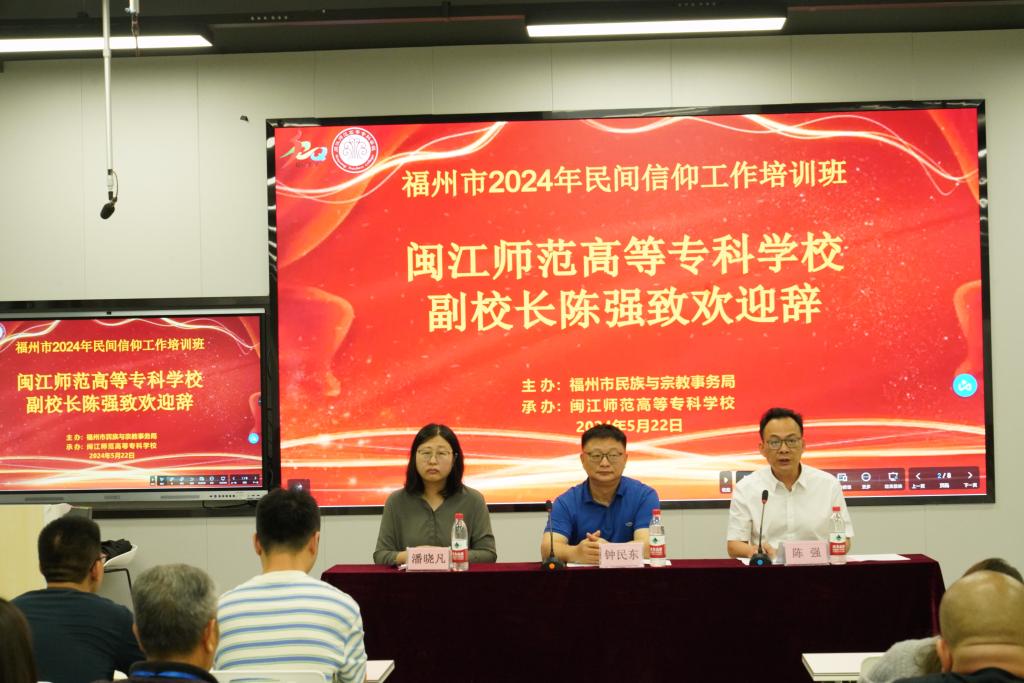 陈强代表学校对学员们的到来表示热烈欢迎。他表示,受福州市民族与宗教事务局的委托,2019年至今,大赢家体育app下载承办了三期福州市少数民族村主干培训班和两期民间信仰工作培训班,共培训学员224人次。今年民宗局继续委托大赢家体育app下载承办本次民间信仰工作培训班,大赢家体育app下载将严格按照培训方案开展培训,为学员们提供优质的学习平台,希望各位学员们学有所获、学有所成、学有所用。