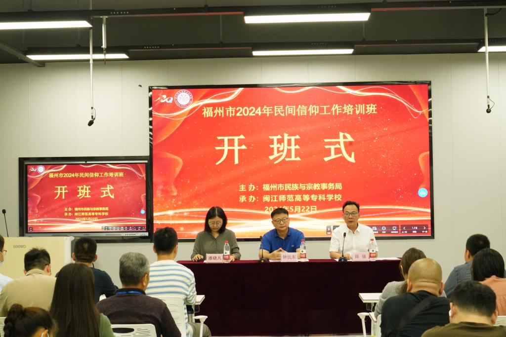 钟民东作了开班讲话。他提出了三点建议与大家共勉:一是要加强学习,提升民间信仰活动场所规范化管理水平。二是要加强宣传,深挖民间信仰的当代文化价值。三是要加强引导,发挥榕台民间信仰活动场所同根同源、同信同神的区位优势。
