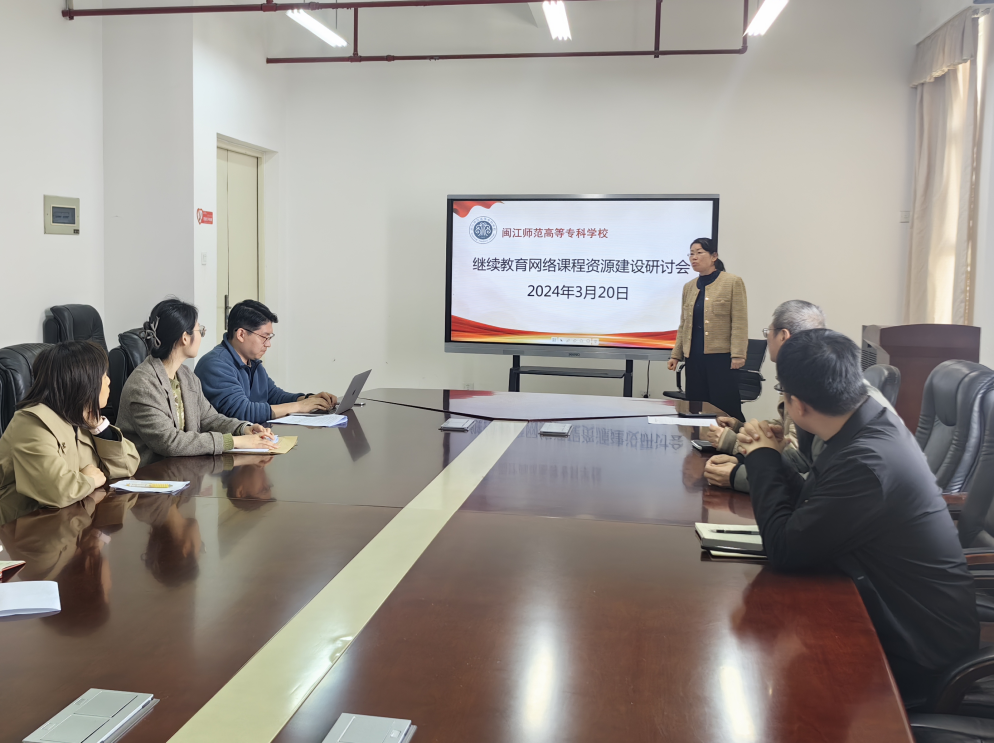 2024年3月20日下午,大赢家体育app下载继续教育学院在旗山校区综合楼七楼会议室召开了继续教育网络课程资源建设研讨会,数字信息工程学院、小学教育学院等院代表、参与课程拍摄的教师及厦门学雅教育科技有限公司技术人员参加了会议。