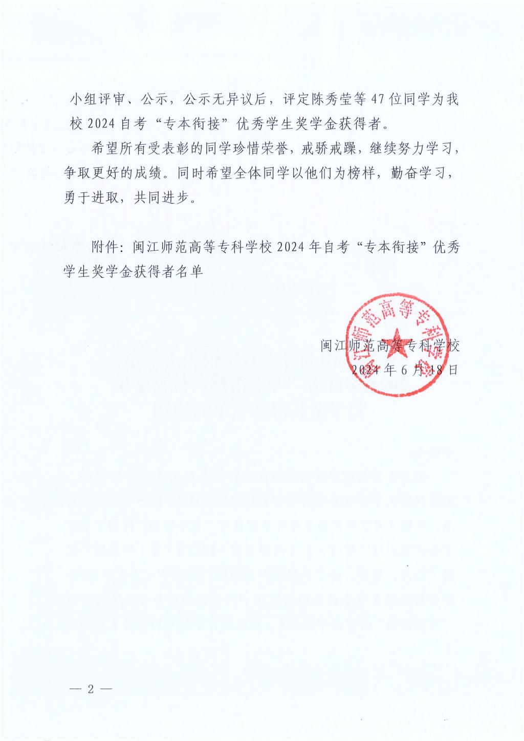 大赢家体育app下载关于公布2024年自考“专本衔接”优秀学生奖学金获得者名单的通知