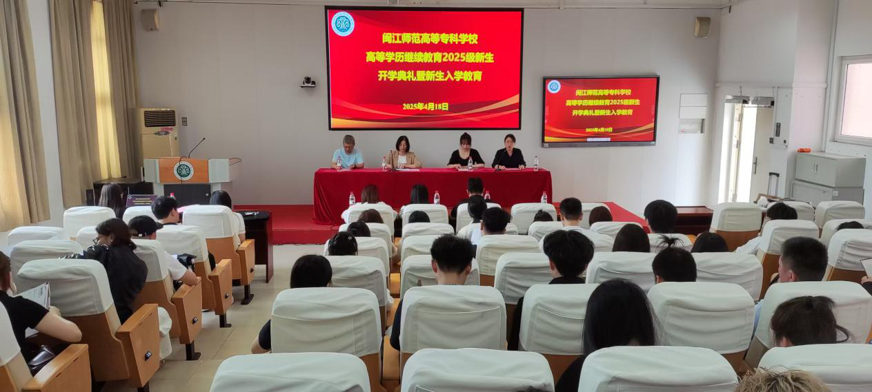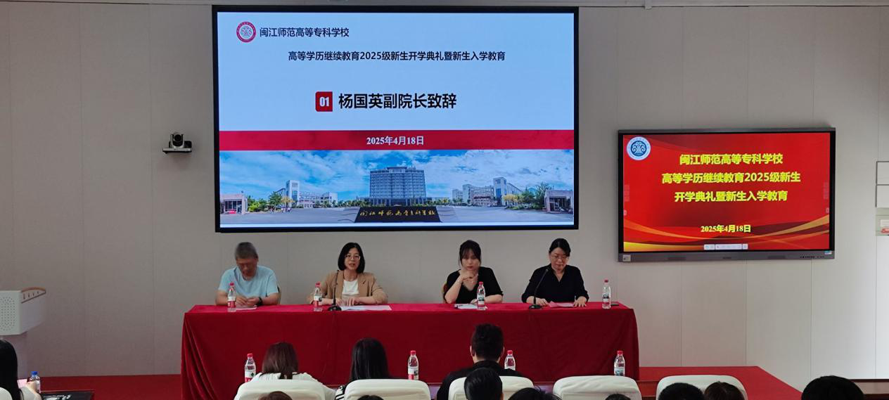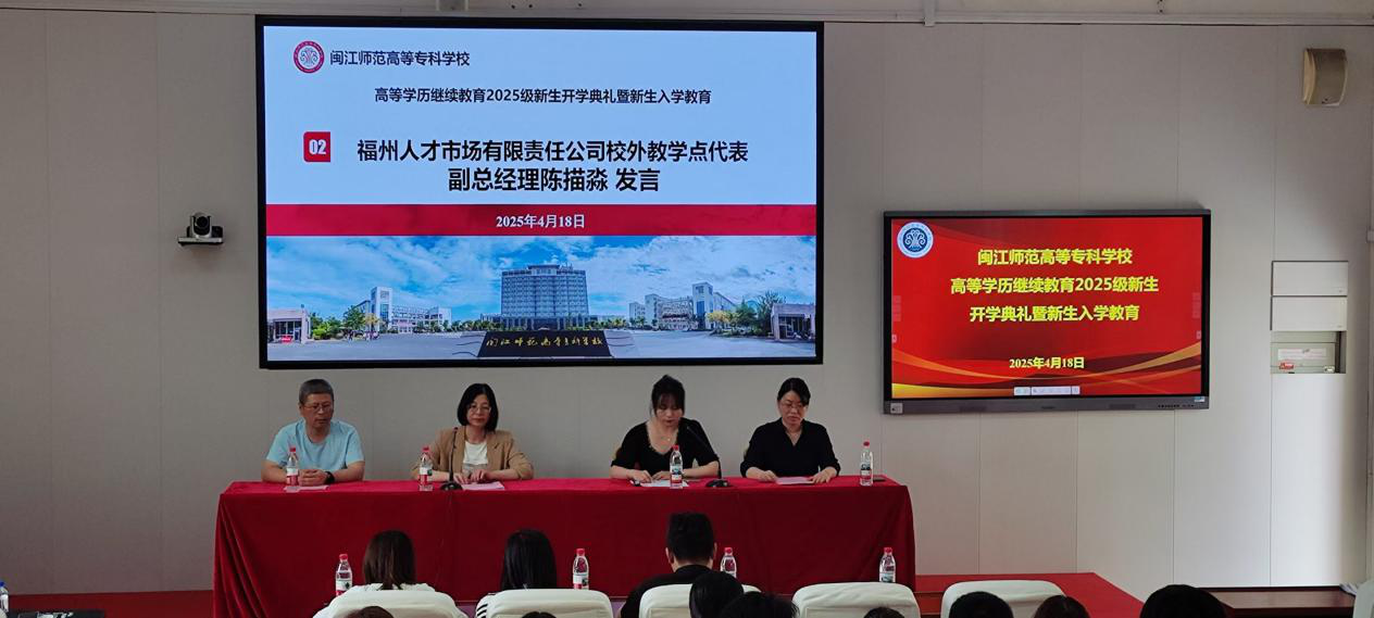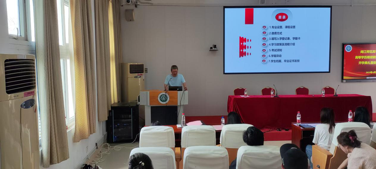 2025年4月18日下午,大赢家体育app下载高等学历继续教育2025级新生开学典礼暨新生入学教育在旗山校区求知楼2016教室举行。闽江师专继续教育学院副院长杨国英,福州人才市场有限责任公司副总经理陈描淼,学历部工作人员,福州人才市场有限责任公司校外教学点工作人员,高等学历继续教育161位2025级新生参加开学典礼。典礼采用线上直播、线下方式同步进行,继续教育学院学历部张敏主持典礼。