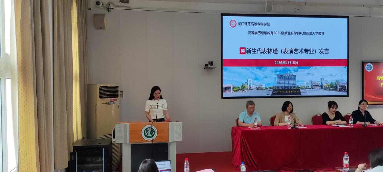 新生代表林瑾表示,成为闽江师专高等学历继续教育的一名新生来之不易,表达了在闽江师专三年的高等学历继续教育学习的信心和决心。